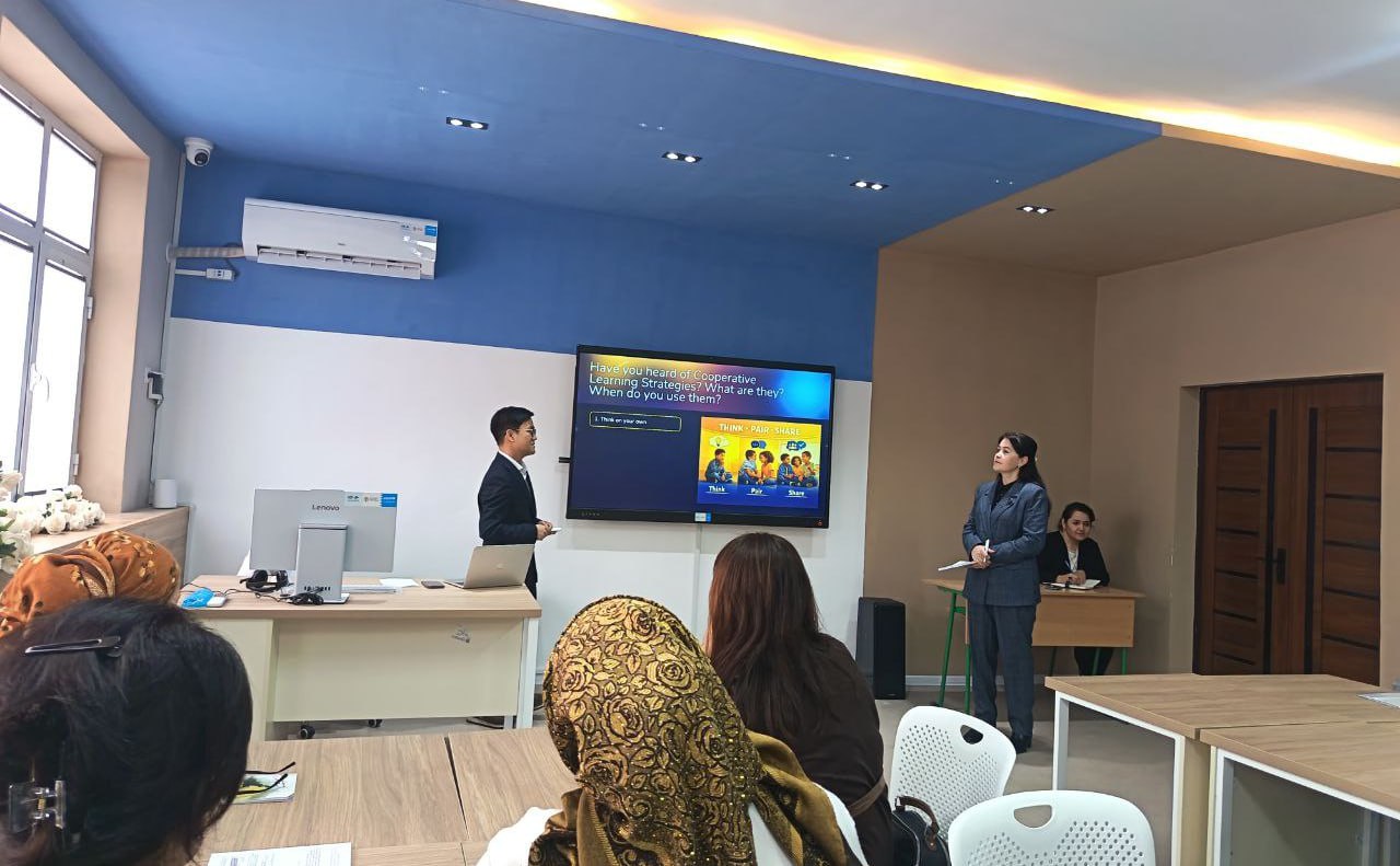 Seminarda janob Bernardo Melchorga Tillarni o‘qitish metodikasi kafedrasi katta o‘qituvchisi Yulduz Hodiyeva ko‘maklashdi. Amaliyotda samarali bo‘lgan faol o‘qitish strategiyalari trenerlar tomonidan zamonaviy yondashuvlar va hayotiy misollar yordamida batafsil tushuntirib berildi.